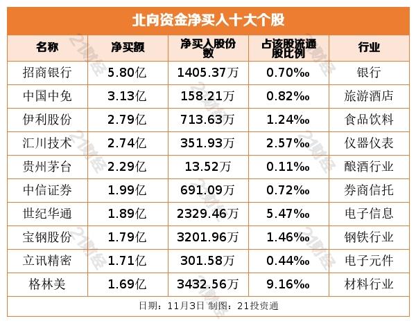 个股方面,北向资金净买入招商银行(600036.SH)、中国中免(601888.SH)、伊利股份(600887.SH)、汇川技术(300124.SZ)、贵州茅台(600519.SH)居前;净卖出宁德时代(300750.SZ)、美的集团(000333.SZ)、洋河股份(002304.SZ)、海螺水泥(600585.SH)、华兰生物(002007.SZ)居前。