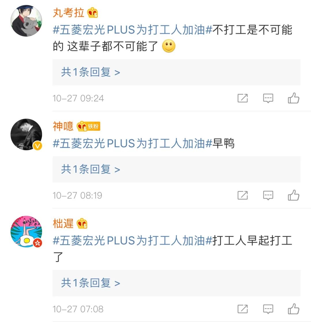 但同样都是蹭“打工人”梗,五菱汽车的行为却收到了网友的一致好评,被称赞亲民,拉近距离感,引来网友自发转发、评论,和官微进行互动。一个社会化营销行为,带来用户好感度的同时,还很大地提高了品牌声量。