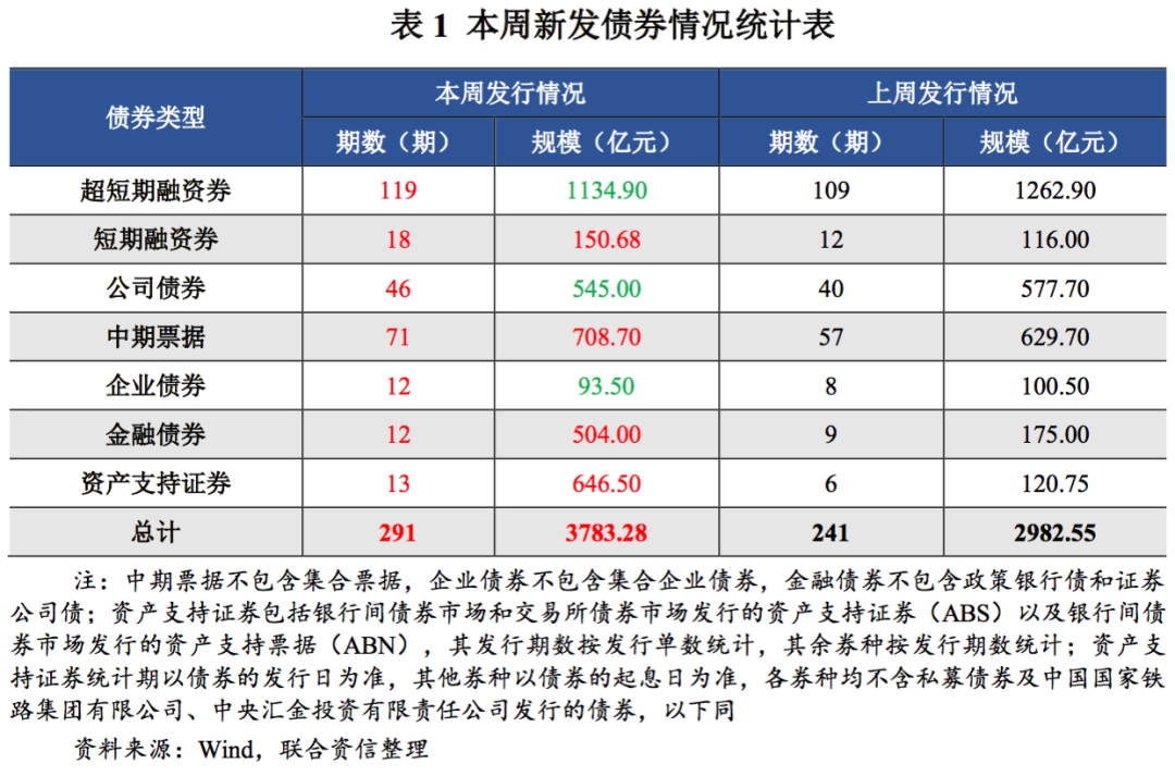 (一)本周债券市场发行期数和发行规模较上周整体有所上升