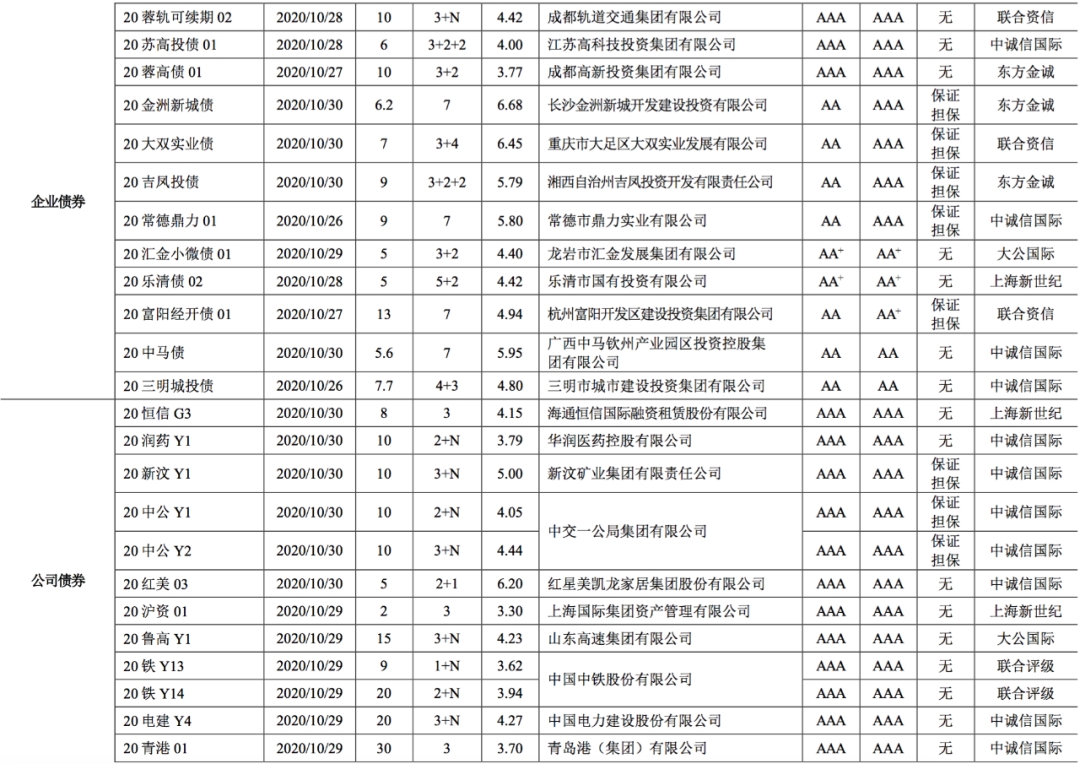 附录1:本周新发债券信息