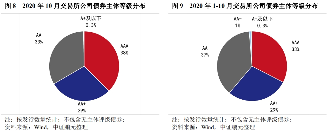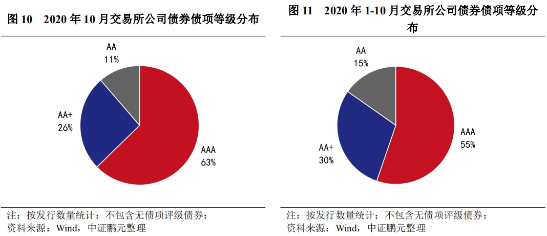 4. 10月份交易所公司债券主体评级以高等级为主,信用重心较上月上升