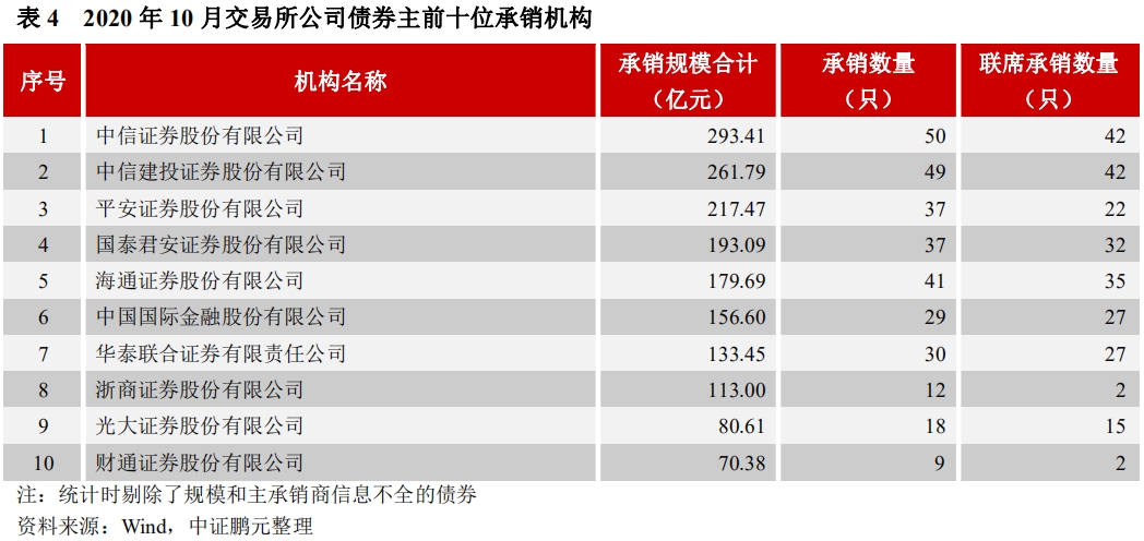 8. 10月共75家机构参与交易所公司债券承销,中信证券承销规模居首位