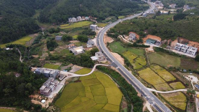 紫金县九和镇金光村发挥省交通运输厅帮扶优势,整合资源将县道X157线御临门温泉度假村至九和镇圩路段改建为二级省道S340,作为紫惠高速连接线,目前已实现主线通车,成为金光村的脱贫路、致富路、景观路。金光村除了主村道连接上高速网,还户户通了水泥路。路通财通,金光村依托不断改善的交通条件大力发展红肉蜜柚产业、南药种植产业、“村长伯伯”电商产业、金光生态园产业、印象金光旅游项目等五大产业,带动群众脱贫致富。产业带动的效应不断显现,金光村集体收入从2016年的3.4万元提升至2019年的35.5万元,实现了10倍增长。2019年可开发贫困户人均可支配收入达17452元,对比脱贫标准(8266元)增加1倍。农民人口可支配收入从2016年的6500元提升至2019年的20114元,实现了3倍增长。金光村已经从以前的“四大精光”村已经完美蜕变为前途无量的“金光”村。