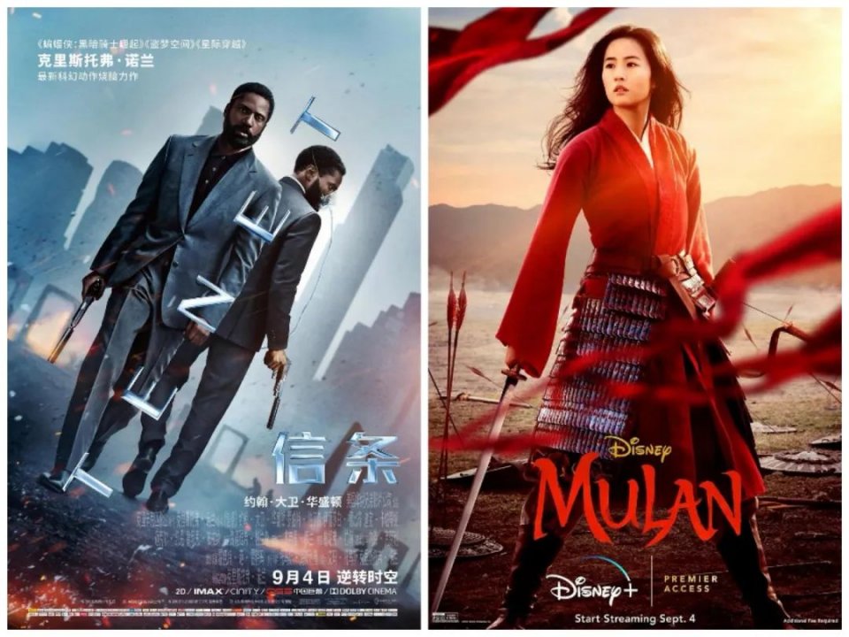 这里有一个很有意思的对比是《花木兰》和《信条》。两部影片制片成本均为2亿美元左右,均在9月上旬上市。只不过在发行方式上,《花木兰》选择了PVOD,《信条》选择了纯院线发行。