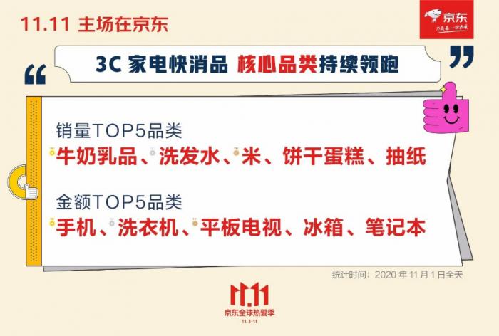 11月1日,今年的双十一正式开启。数据显示,11月1日全天,京东3C家电、快消品等核心品类持续领跑全行业,时尚居家等品类高速成长,手机、洗衣机、平板电视、冰箱、笔记本等3C家电类则位于成交额排名榜首。这再次印证了京东在家电行业的霸主地位。