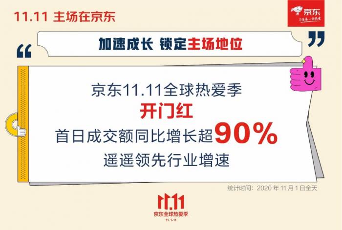 当然,愿意与京东合作,不仅仅是因为它乐意“分蛋糕”,更是看重了它“做蛋糕”的能力。受到新冠肺炎疫情的影响,今年上半年,中国的零售行业受到了前所未有的考验。据国家统计局数据,今年前9个月全国社会消费品零售总额同比下降7.2%,规模以上工业企业利润下降2.4%。然而,在这样不景气的市场环境下,京东却成为了数十万商家的“避风港”。今年前9个月,2004个品牌在京东GMV过亿,京东618第三方商家成交额同比是去年的2.2倍,在今年的双十一,京东又宣布将助力商家销售增速同比翻倍。京东发布11.11首日开门红战报,全天成交额同比增长超90%,在如此庞大的体量上依然持续保持加速度,遥遥领先行业增速,锁定绝对主场。京东不断赢得合作伙伴信赖,已然成为今年品牌和商家的最大增量场。