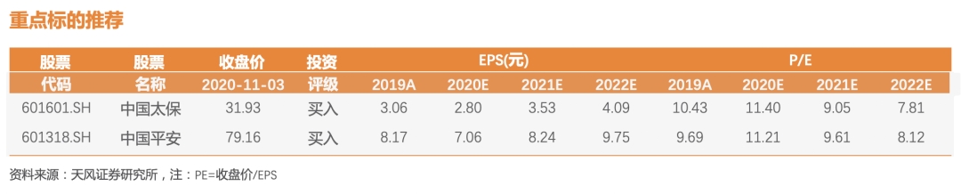 负债端大概率已度过最差的时候,短期和长期均可看到改善态势。短期方面,开门红提前带来“开门红则全年红”,构成有力催化。展望长期,平安和太保的长期转型措施主动让渡了短期保费的市场份额,但将提升长期竞争力。太保、平安、友邦差异化服务的领先布局有望在未来带来破局。我们判断,中国太保、中国平安、友邦保险有望率先走出低谷,我们更加看好其2021年NBV同比增速。重点推荐太保、平安;建议关注友邦。
