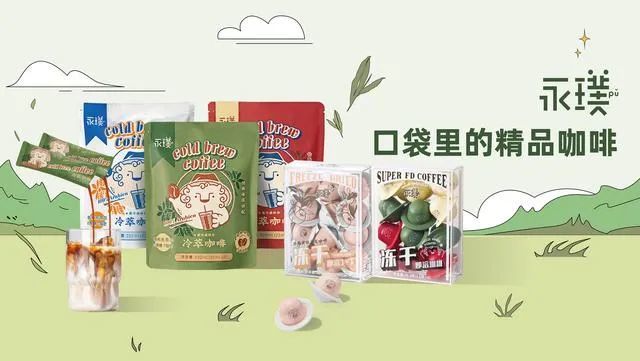永璞是成立于2014年的品牌,同样致力于便携精品速溶咖啡产品,产品线包括挂耳、冷萃咖啡液和冻干咖啡粉。相比精品便携速溶咖啡的其他品牌,永璞擅IP联名,从内容、文创、到影视、品牌等都有涉及。