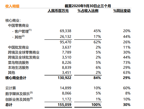 数据显示,截至2020年9月的三个月,阿里来自商家的收入为693.38亿元,同比增长20%,在总营收中占比45%,可以说是阿里的最大收入来源。