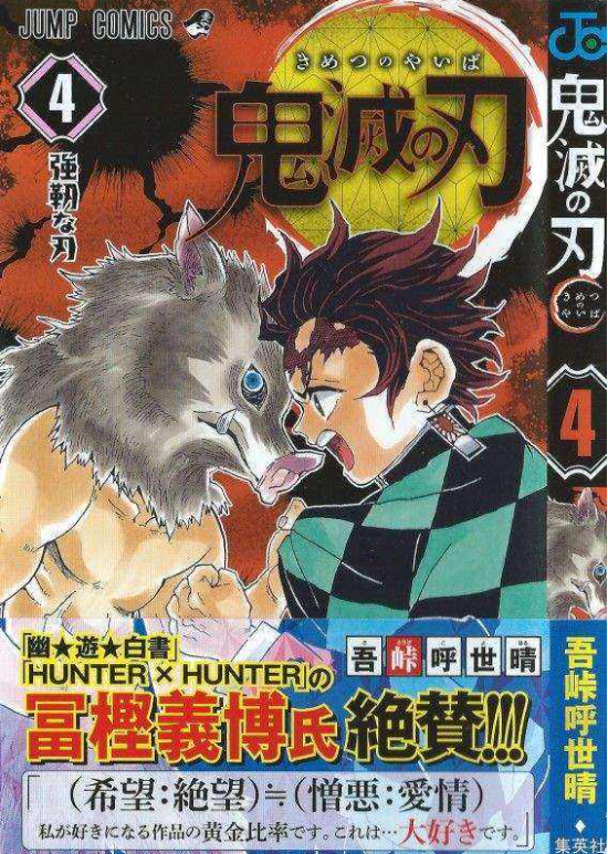 如今热卖的景象让人很难想象到《鬼灭之刃》最初时的艰难。漫画连载初期,因为画风“怪异”,节奏把控较弱,老梗又太多,《鬼灭之刃》单行本曾一度无人问津。不过,在第四卷《那田蜘蛛山篇》单行本发布后,《周刊少年JUMP》请来了著名漫画家富坚义博进行宣传。富坚在封面上写道:“(希望:绝望)≈(憎恶:爱情)。这是能让我喜欢上的作品的黄金比例。我非常喜欢这部漫画。”