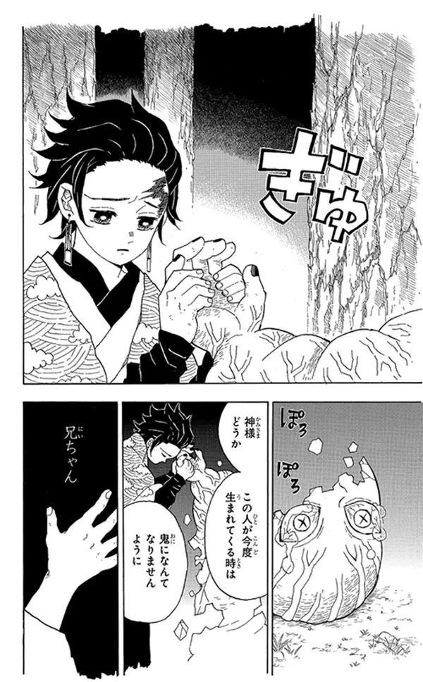 在《鬼灭之刃》的第8话中,炭治郎打倒手鬼后,握住了对方的手说出了著名台词:“神啊,下次请不要再让他作为鬼来到这个世上。”