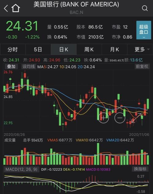 ▽美国银行股价走势