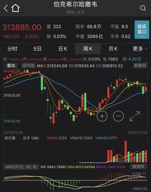 ▽伯克希尔A类股股价走势