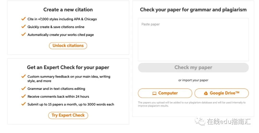 Chegg Writing,写作、语法修改与引文生成工具,这类公司在美国有融资过亿美元的Grammarly,它为学生提供写作、语法自动修改功能的工具平台。