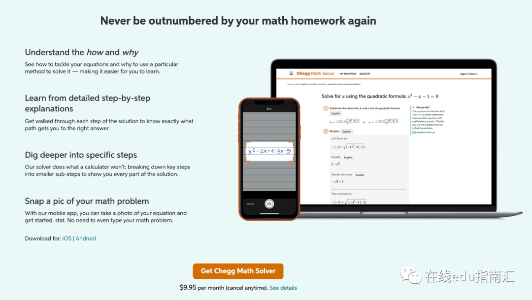 1.4 )2017年1250万欧元,收购德国数学教育服务商Cogeon GmbH 。它的Math 42工具,能够帮助学生自动解答数学问题,现在成为Chegg的 math solver工具。2020年Chegg再次以1亿美元收购Mathway,另一家美国的数学问题拍照搜答案头部公司。