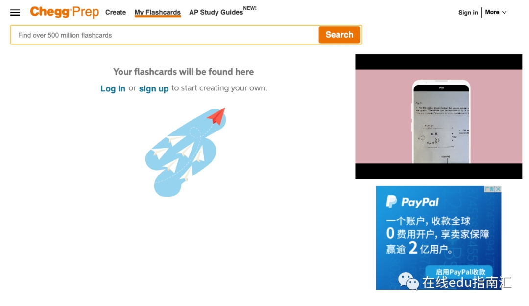 当下Chegg的Flashcard业务,从界面来看,也可以看到它类Quizlet早期的策略:通过业务侧栏广告位形式获得收入,同时为学生提供免费学习卡片工具产品。