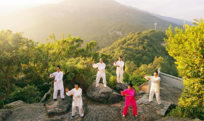 本次云上太极大会中积极响应《国务院关于实施健康中国行动的意见》的号召,以山为载体,以太极文化传承发扬为纽带,创新地将太极康养文化与现代IP运营相结合,以大众喜闻乐见的方式传播中华优秀传统文化。大会首创融合真实场景的沉浸式太极表演舞台,各队伍深度融合于罗浮山的葛洪博物馆、冲虚古观、人间仙境、狮子峰等场景中展示太极招,一招一式均舒展大方,举手投足皆中正平稳,尽显太极之健美风骨。悠悠太极浸润千年古道,罗浮山之雄浑壮阔反哺太极招式,共绘一幅融汇绿水青山、中华传统、强身健体的太极康养文化画卷。