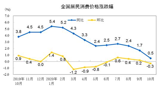 国家统计局:10月CPI同比增长0.5%,10月PPI同比下降2.1%(附解读)