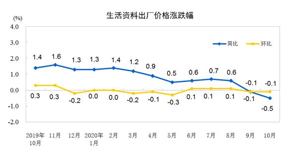 2020年10月份CPI同比涨幅继续回落 PPI同比降幅与上月相同