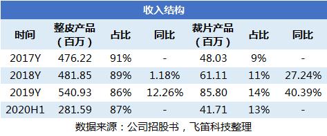 分业务看,明新旭腾的产品结构较为简单,产品类型分为整皮产品及裁片产品。报告期内,整皮产品为公司贡献85%以上的营收,而裁片产品为公司贡献的营收不到15%。