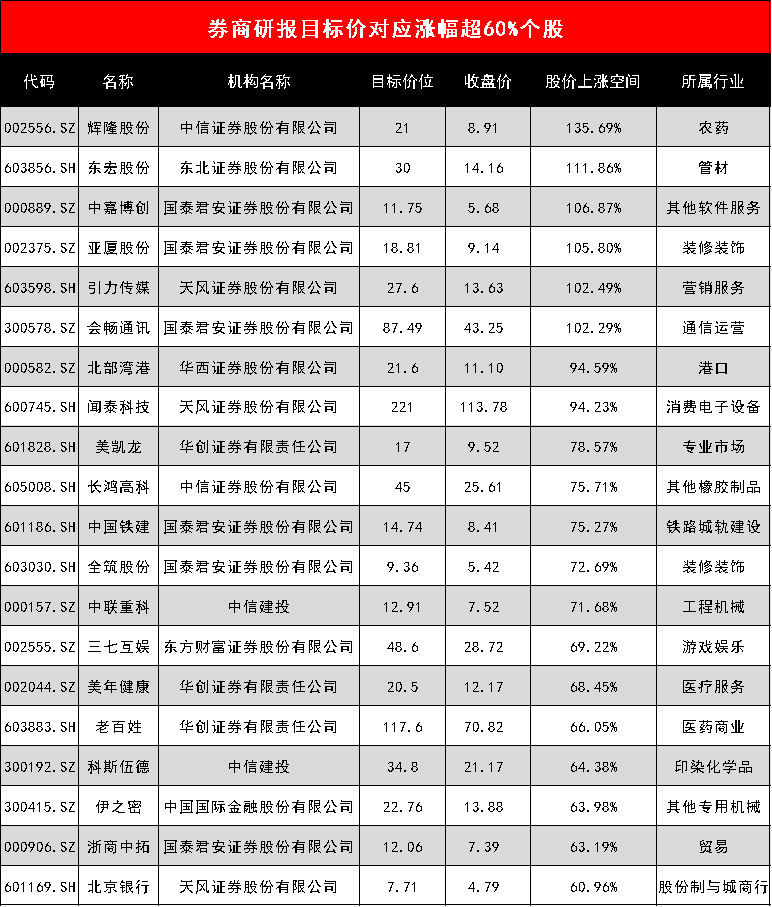 基于政策面的催化,中信证券给予其公司未来合理市值预期180亿元,目标价21元,对应股价涨幅135%。