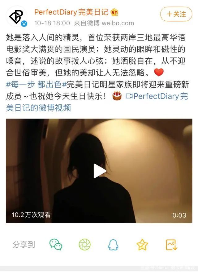 而从具体动作来看,完美日记反常地启用了大牌明星代言人。10月19日,完美日记官宣周迅担任其首位全球代言人,这也是完美日记成立以来首位品牌代言人。