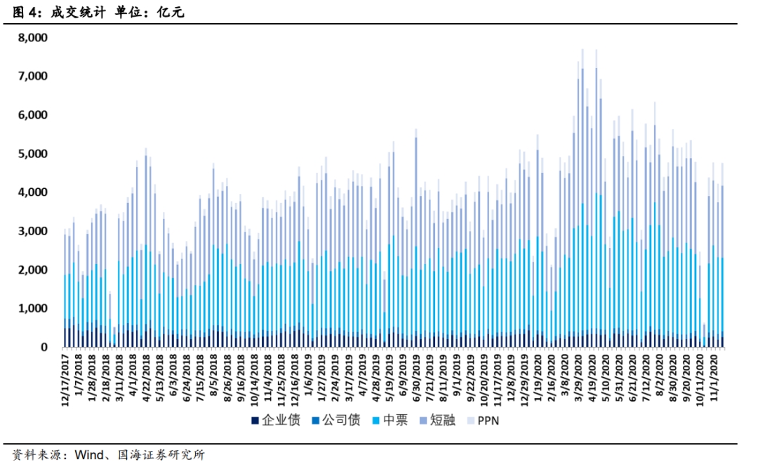 本期信用债合计成交4754.46亿元。分类别看,中票、短融、PPN分别成交1898.66亿元、1864.60亿元、587.47亿元,企业债和公司债分别成交256.21亿元和147.52亿元。
