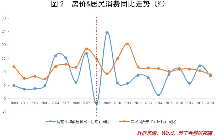 回溯历史不难发现,我国整体房价走势与消费的关系,在2008年前后发生了明显的改变——2008年刚好是国际金融危机过后楼市“白银十年”的起始时间。