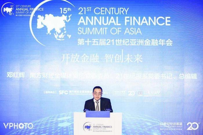 南方财经全媒体集团副总编辑,21世纪报系党委书记、总编辑邓红辉在论坛上代表主办方进行致辞演讲。他表示,站在新的起点,金融业需要深入推进金融供给侧结构性改革,增强金融服务实体经济的能力,满足经济社会发展和人民群众需要。同时,金融业要贯彻落实新发展理念,强化金融服务功能,找准金融服务重点。