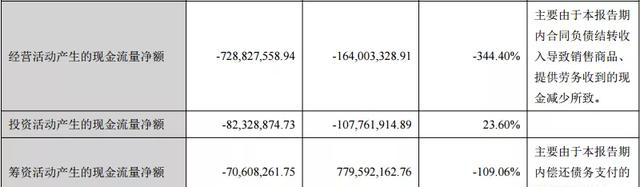 财报显示,2020年上半年,顺鑫农业经营活动产生的现金流量净额约为-7.29亿元,同比下降344.40%;现金及现金等价物净增加额为-8.82亿元,同比下降273.63%。