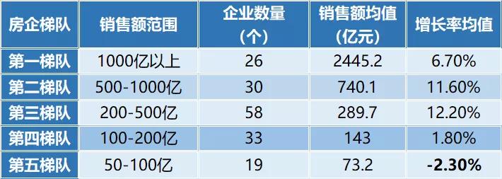 2020年1-10月,房企不同阵营发展分化。销售额达到1000亿以上的第一阵营共26家,销售额增长率均值为6.7%。而处于第五梯队(销售额50-100亿)的19家房企,销售额增长率为-2.3%(数据来源:中指研究院)。