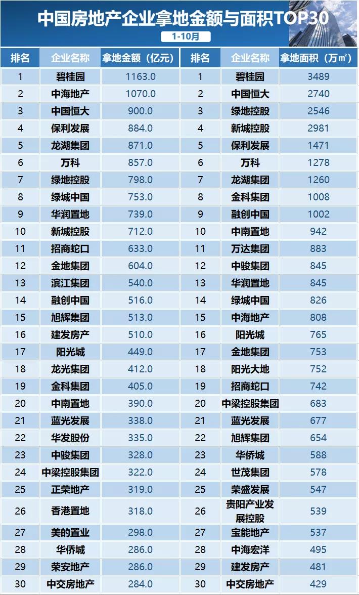 2020年1-10月,TOP100企业拿地总额25950亿元,拿地规模同比增长10.9%,增长率较1-9月有所上升。TOP100门槛值升至65亿元,环比增长4.8%,TOP100企业招拍挂权益拿地总额占全国300城土地出让金的比例为53%。(数据来源:中指研究院)
