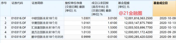 21金融圈查阅数据显示,截至11月12日,除了鹏华创新未来外,其余四只基金净值均取得正收益。其中,收益最高的当属中欧创新未来,该基金成立于10月9日,在不足一个月的建仓期内,回报率已经达到了3.01%。