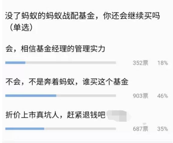 另外46%读者表示,“不是奔着蚂蚁,谁买这个基金”。