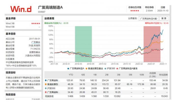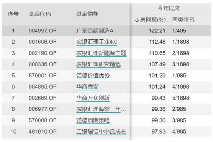 广发基金公司旗下广发高端制造基金年初至今的收益率达到127.11%,排名全市场第一。
