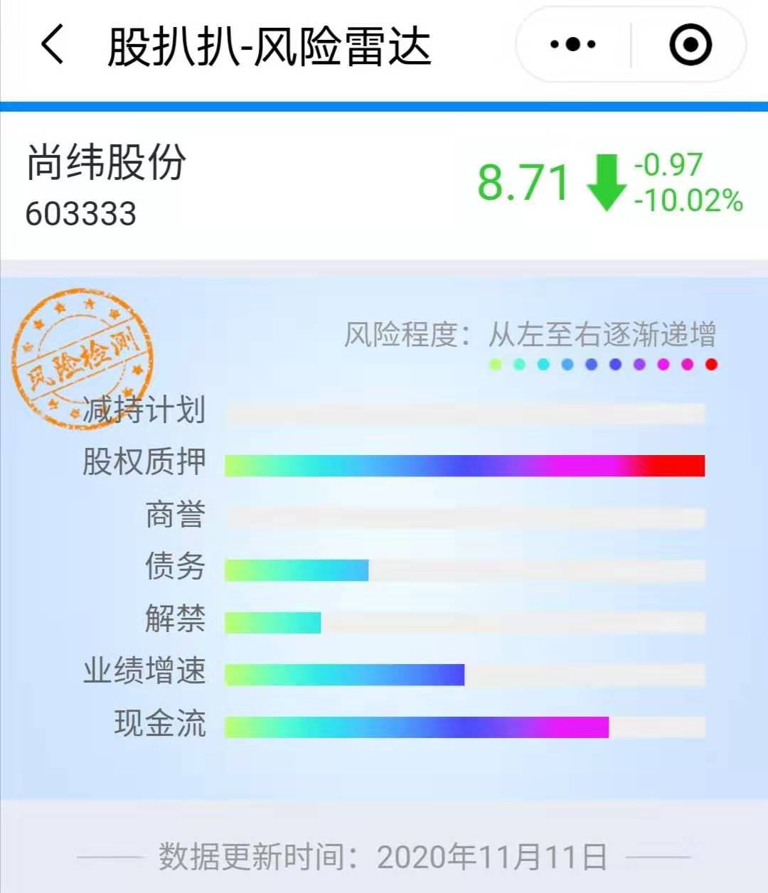 其实,对于个股风险,我们可以用专业的风险排除工具,股扒扒小程序来提就可以看到尚纬股份相关信息。