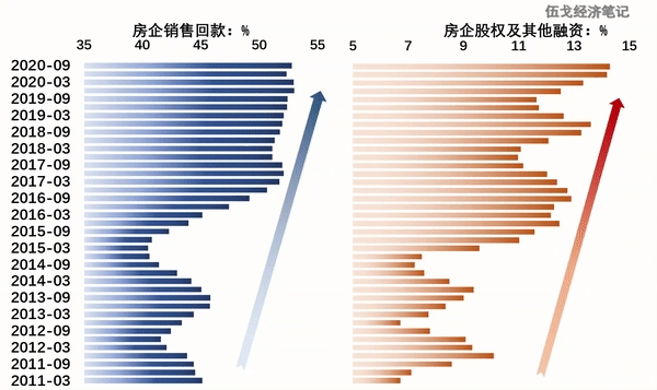 注:“房企股权及其它融资”为其在房企筹资性现金中的占比,“房企销售回款”为其在房企开发资金中的占比。