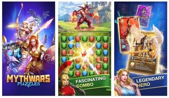 《MYTHWARS PUZZLES》是一个混合品类的游戏,消除+卡牌+城建,也有做广告变现。广告变现是比较新或者是比较小的尝试,整体下来感受是比较不错的。