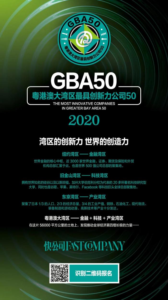 GBA50评选,由南方财经全媒体集团指导,《快公司FastCompany》、无冕财经、广州市品牌质量创新促进会(“湾区制造”评定项目牵头单位)共同主办,并将陆续融合各政府部门、专业智库及投资机构,基于GBA50的辐射延伸,为粤港澳大湾区建设提供强有力的平台,助力大湾区优质企业的发展与融合。
