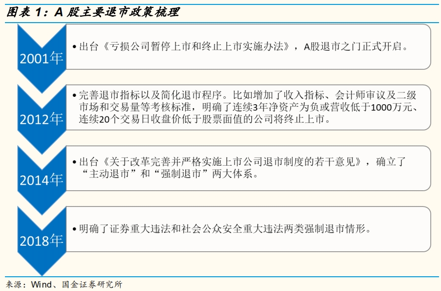 1990年底,沪深交易所相继成立。然而十年后迈入新世纪,我国才迎来第一支退市股票,退市制度才慢慢开始建立(如下图)。