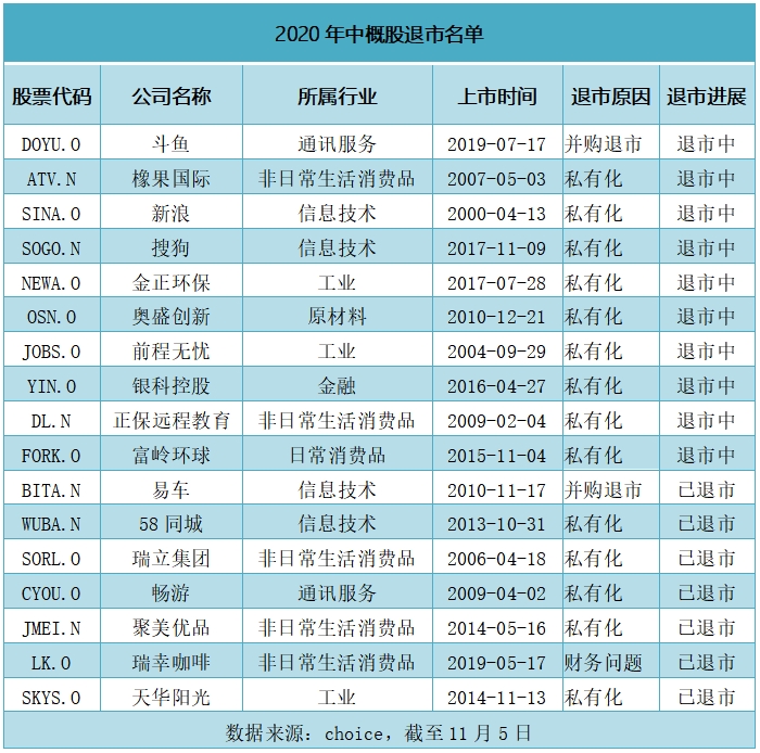 2.美股:中概股退市数量将升至17家,私有化退市为主流