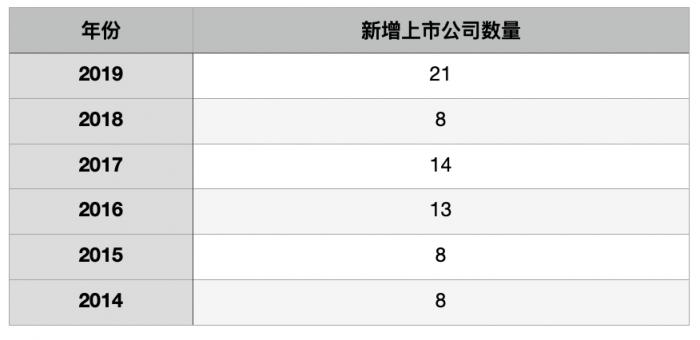 (图:苏州企业新增IPO数(2014-2019) 数据来源:苏州市统计局)