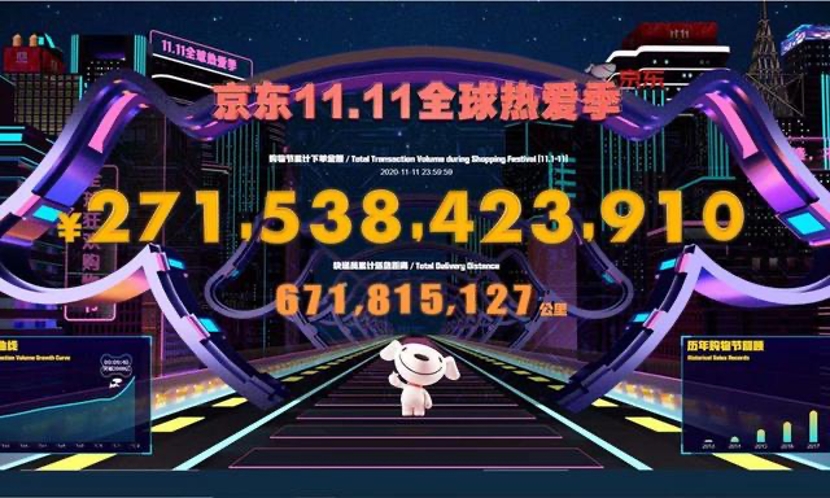 去年双11之后京东商城升级为京东零售集团,2020年11月1日至11日,京东创下2715亿元销售额。此前2019年双11期间京东的销售额为2044亿元。