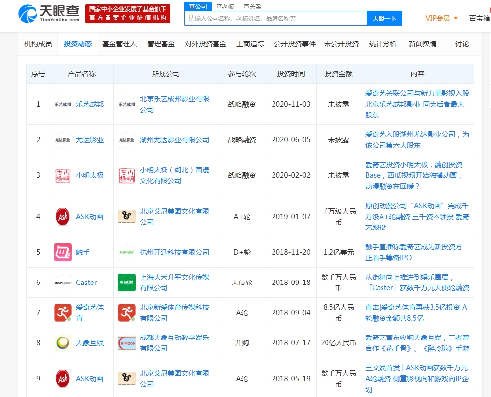 爱奇艺的用户价值受用户所关心的产品具备要素的绝对值影响。根据天眼查APP显示,为了保障用户的观看体验以及内容质量,爱奇艺曾多次入股影视制作公司,进入内容制作的上游。
