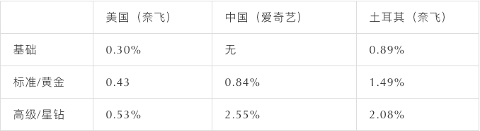 表1 奈飞、爱奇艺会员价格占各国月人均可支配收入比