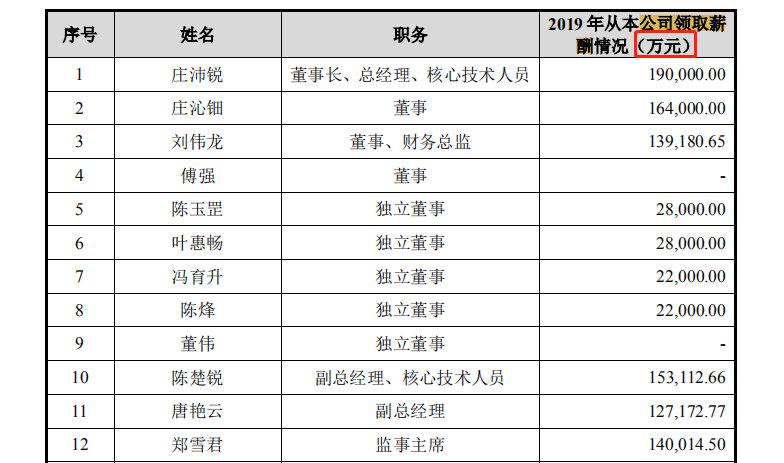 招股书申报稿显示,2019年,真美股份董事长庄沛锐薪酬高达190000万元(19亿元),高管薪酬总额合计超120亿元。