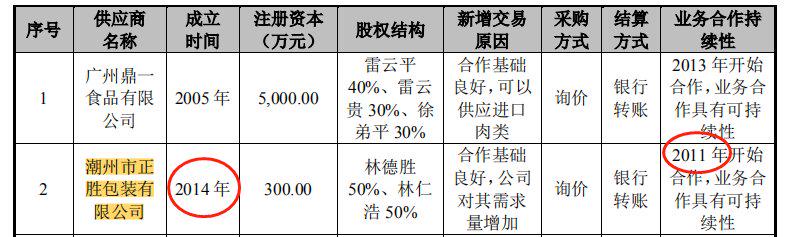 此外,真美股份还把时间点弄错。招股书申报稿显示,潮州市正胜包装有限公司与真美股份从2011年开始合作,但前者成立时间在2014年。还没成立就合作?这家供应商是否属实也让外界质疑。