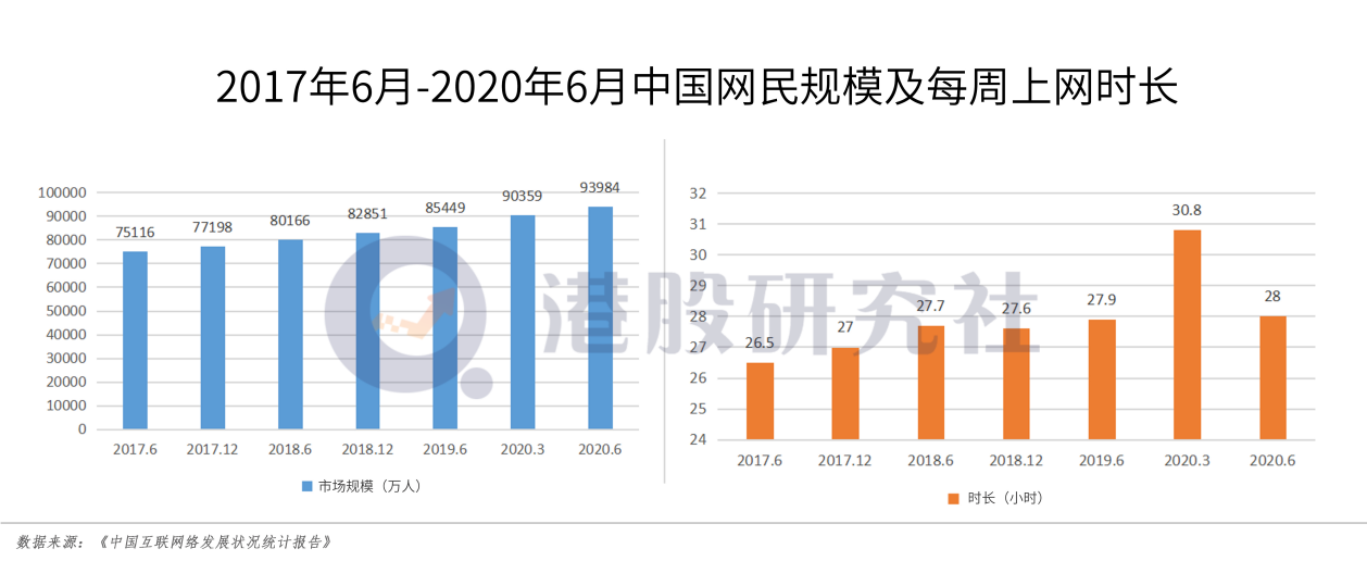 当前中国互联网用户规模和时长几乎触顶,截至2020年6月,我国网民规模达9.4亿,但近年来增速缓慢;疫情虽然加速了今年一季度网民的用户时长,但从数据走势来看,这种趋势似乎难以持续。互联网C端的表现随着用户趋向饱和,红利也接近尾声。