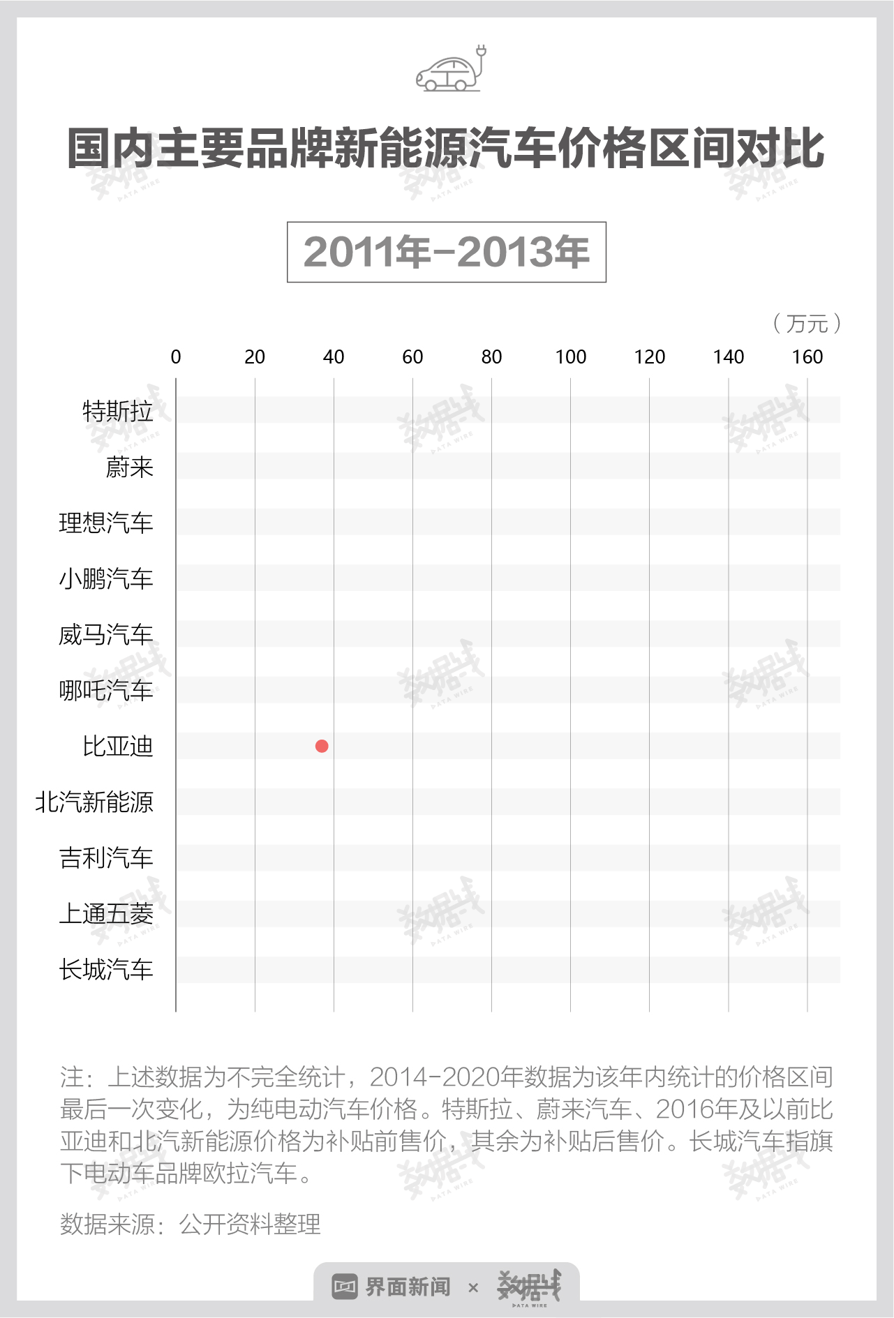 自2009年中国第一辆纯电动乘用车上市以来已过去了11年。11年来随着产品线越来越丰富,各主流新能源汽车品牌覆盖的售价区间也逐渐扩大。特斯拉近几年起步价不断降低,已低于造车“新势力”中蔚来、理想汽车的起步价,比亚迪等主力新能源汽车品牌的起步价格也不断降低。