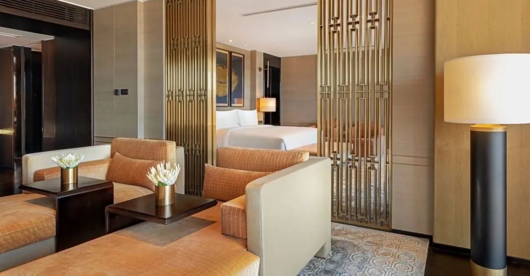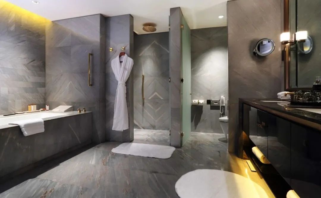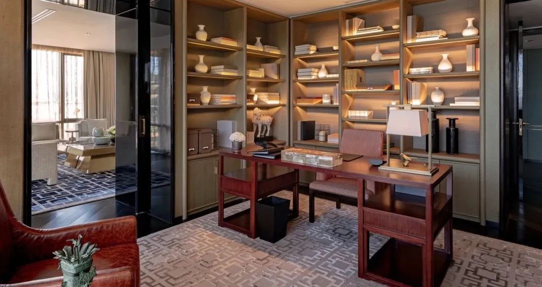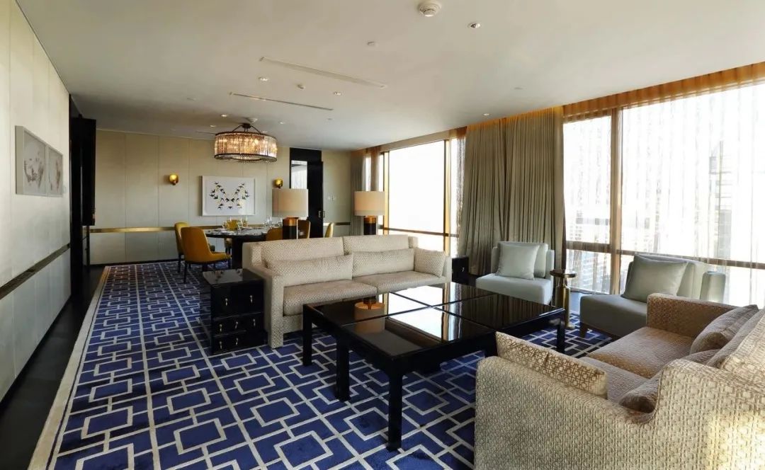 北京华尔道夫酒店主楼拥有170间客房,包含37间舒适套宽敞华贵的房间,将会客、工作、休息环境进行了划分。